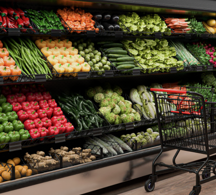 Grocery store shelving, displays, and merchandising solutions