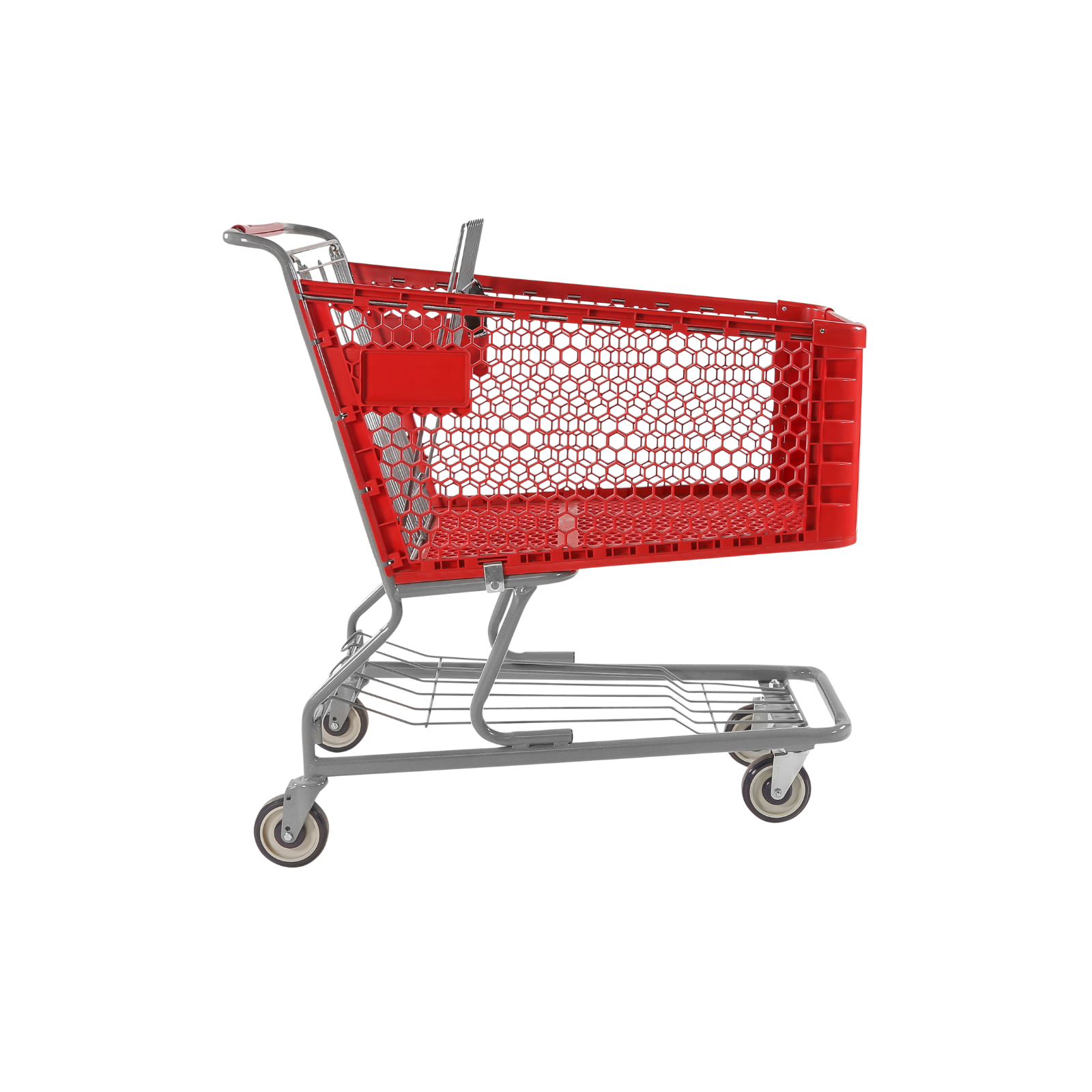Plastic shopping carts are constructed with a molded plastic basket and metal frame, allowing for large capacity with a lighter overall weight. Plastic carts provide a different aesthetic for the shopping experience and are generally available in more colors than metal carts, and offer additional branding opportunities on the side. Additionally, plastic shopping carts can reduce parking lot liabilities and in-store damage to displays or shelving as they’re less likely to scratch/dent vehicles and fixtures.